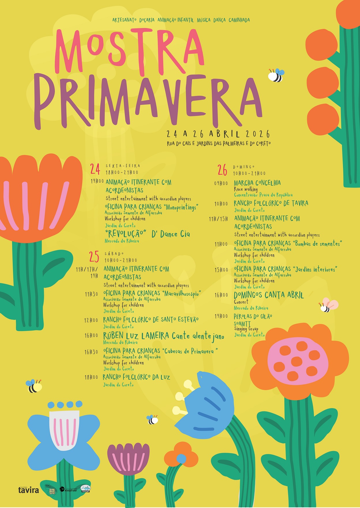Tavira, comunidade representativa da Dieta Mediterrânica como Património Cultural Imaterial da Humanidade da UNESCO, recebe, entre 24 e 26 de abril, na baixa da cidade (Rua do Cais, Jardins do Coreto e das Palmeiras, Mercado da