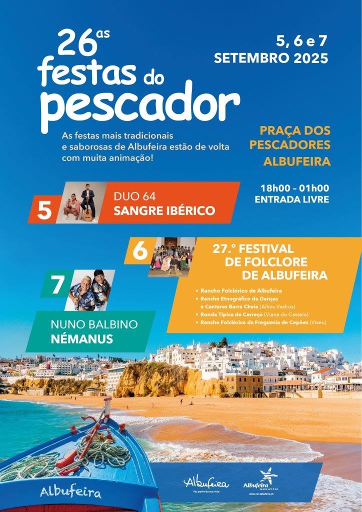 A Festa tradicional mais aguardada do ano pelas gentes de Albufeira está de regresso no primeiro fim-de-semana de setembro (5, 6 e 7) com muita música e a melhor gastronomia da região: o xerém, os choquinhos e lulinhas com tinta, marisco variado, carapaus alimados, moreia frita, feijoada de búzios, choco frito, cataplana, caldeirada de peixe, confecionada com o melhor azeite e a famosa doçaria regional, com destaque para os dom-rodrigues, bolos de figo, amêndoa e alfarroba e as suculentas tortas de laranja; uma verdadeira delícia para o palato de quem aprecia a gastronomia mediterrânica.