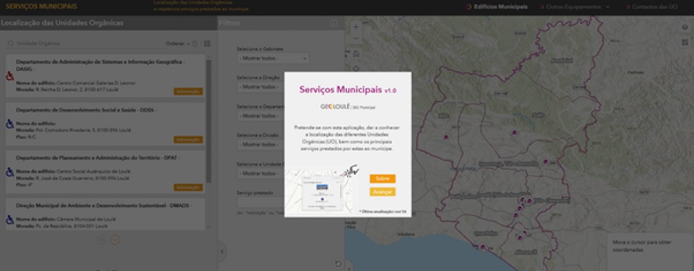 A Câmara Municipal de Loulé lançou uma aplicação WEBSIG que permite consultar informação com a localização de onde se encontram as diferentes Unidades Orgânicas e que inclui os contactos e uma descrição dos serviços prestados em cada local.