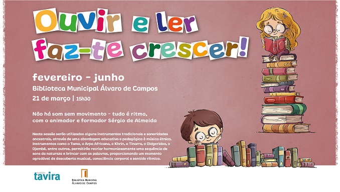 No âmbito do projeto “Ouvir e ler faz-te crescer”, realiza-se, no dia 21 de março, pelas 15h30, na Biblioteca Municipal Álvaro de Campos, a sessão “Não há som sem movimento – tudo é ritmo”, sob a orientação do animador/formador, Sérgio de Almeida.