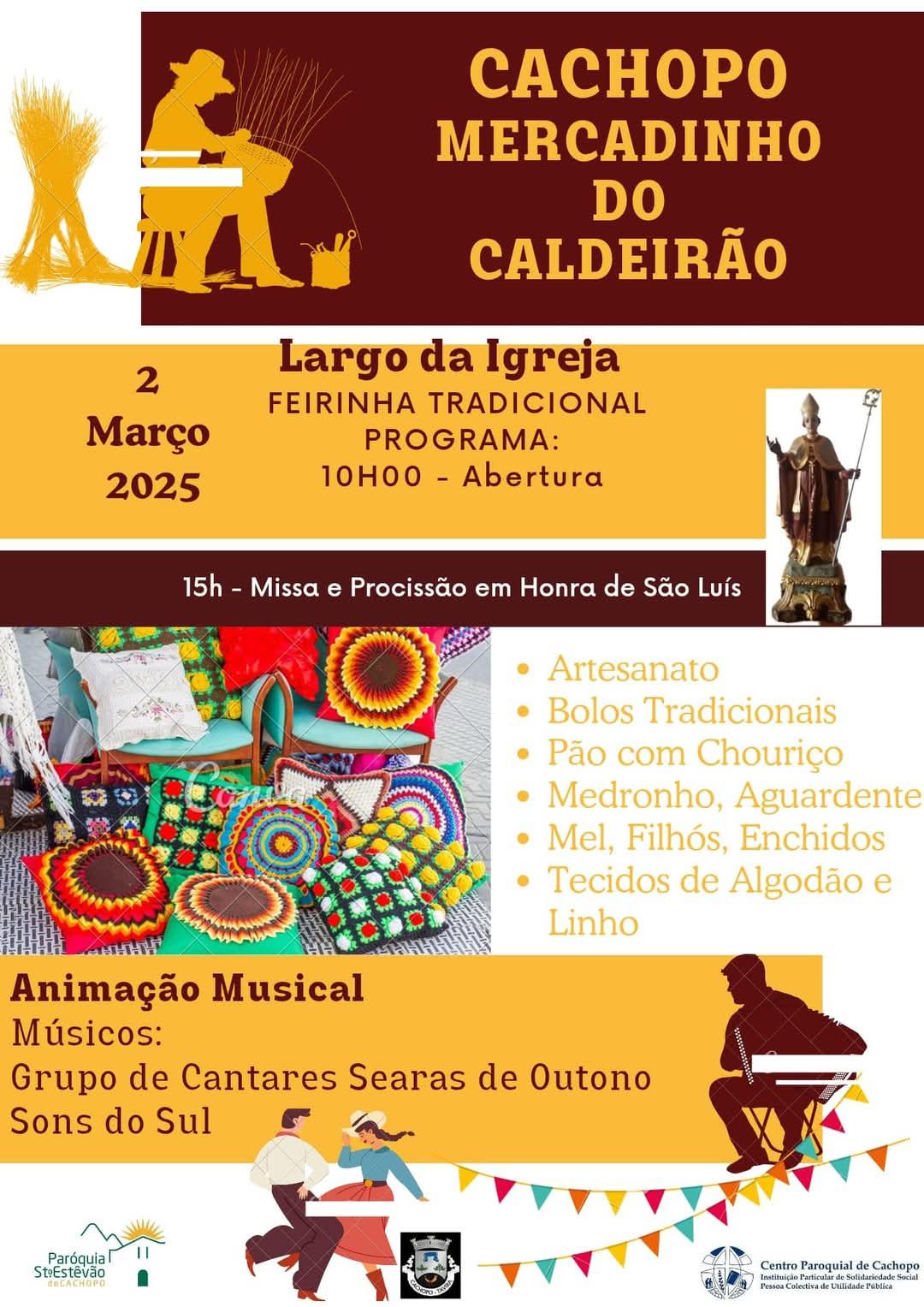Para mais detalhes sobre o Mercadinho do Caldeirão e sobre a Festa em Honra de São Luís consulte o cartaz em anexo.