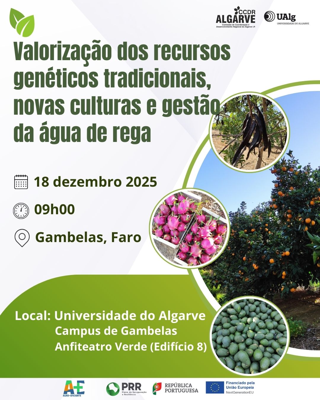 As inscrições estão disponíveis em https://www.ccdr-alg.pt/site/info/seminario-ae-valorizacao-dos-recursos-geneticos-tradicionais-novas-culturas-e-gestao-da-agua
