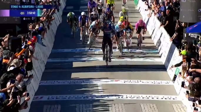 A etapa foi rápida, mesmo que no final o pelotão tenha abrandado na aproximação a Lagos. Os pedais voltaram a girar mais rápido na preparação para o sprint final na cidade lacobrigense e, aí, Paul Magnier levantou os braços.