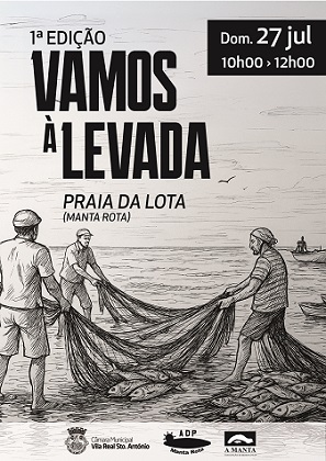 A Praia da Lota (Manta Rota, Vila Real de Santo António) será palco, no próximo dia 27 de julho (domingo), entre as 10h00 e as 12h00, da atividade “Vamos à Levada” – uma recriação participativa de uma antiga prática piscatória artesanal que visa preservar e valorizar a memória coletiva das comunidades costeiras do concelho de Vila Real de Santo António.