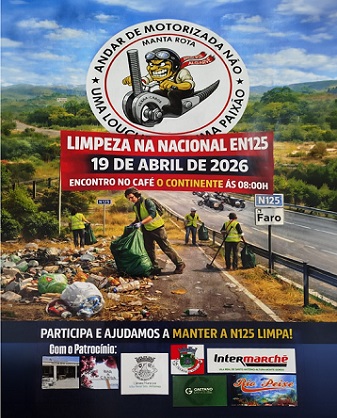 O grupo motard Serra Cabos, sediado na Manta Rota, promove, no próximo domingo, dia 19 de abril, uma ação de limpeza ao longo da EN125, na freguesia de Vila Nova de Cacela.