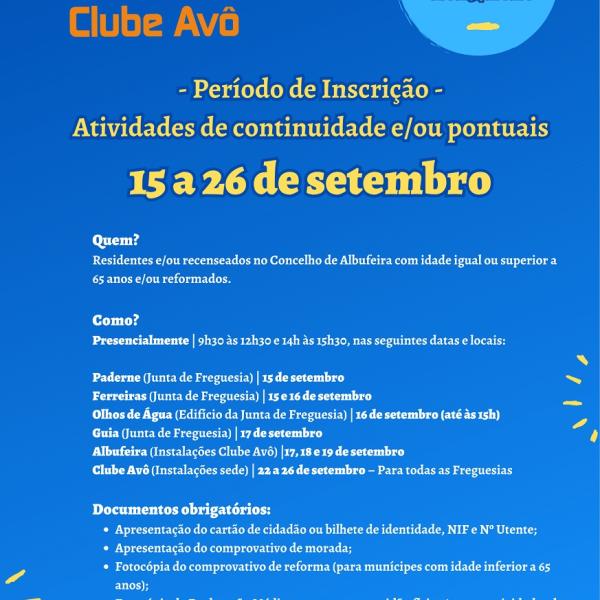 Inscrições para o ano letivo do Clube Avô abrem a 15 de setembro