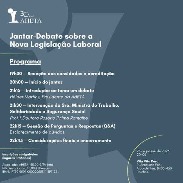 AHETA organiza Jantar-Debate sobre nova legislação laboral