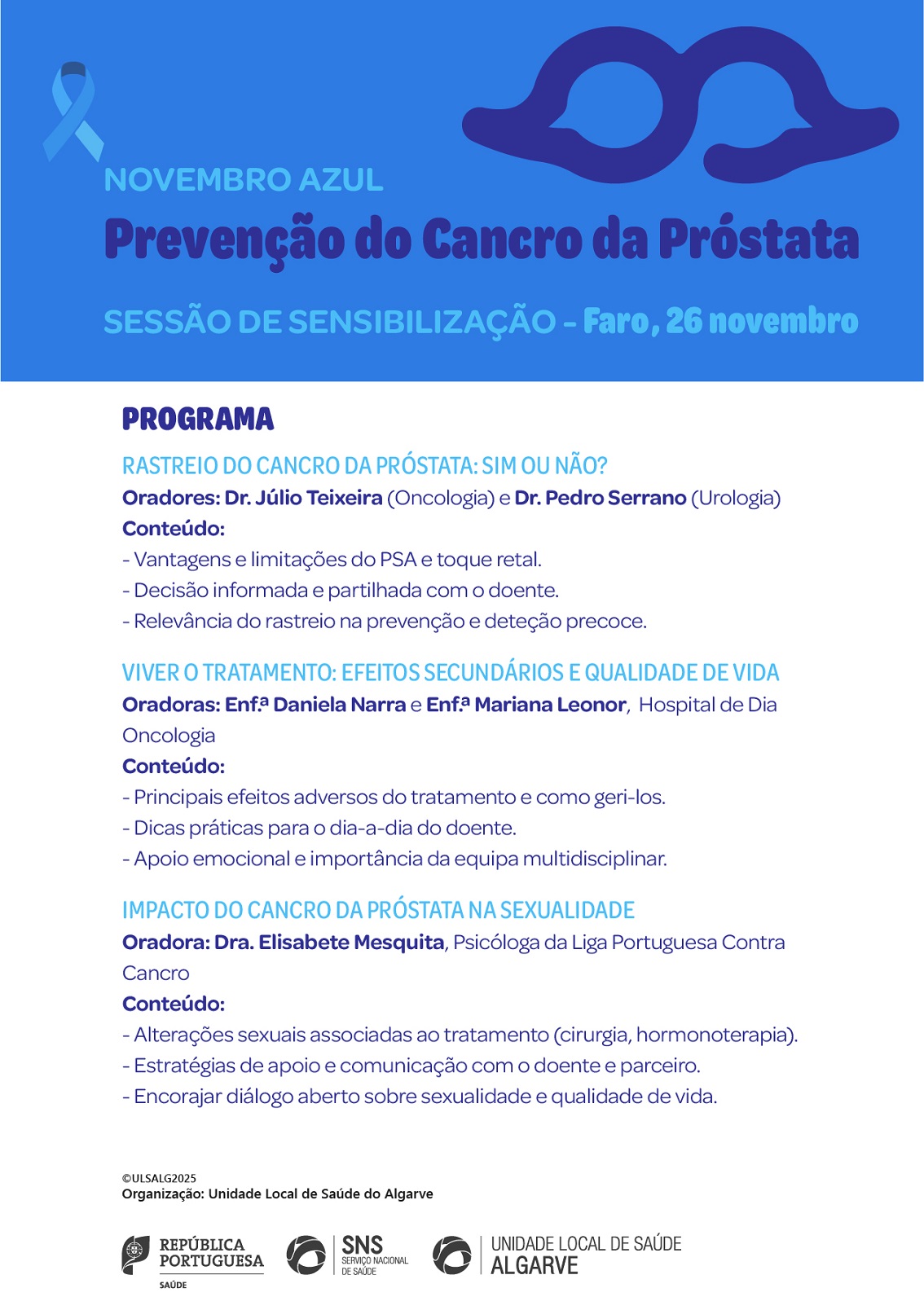 Os profissionais de saúde do Hospital de Dia de Oncologia de Faro promovem, neste dia 26 de novembro, uma ação de sensibilização sobre o Cancro da Próstata.