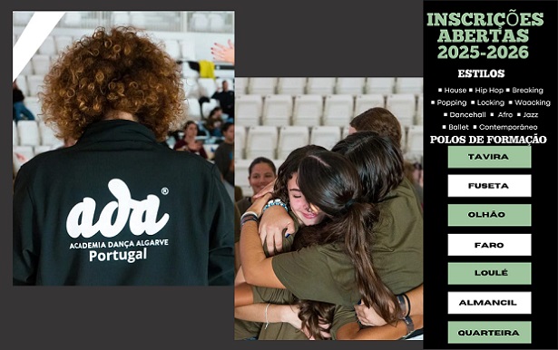 A ADA – Academia de Dança do Algarve tem o prazer de anunciar que já se encontram abertas as inscrições para os seus pólos de formação em Danças Urbanas, disponíveis nas cidades de Tavira, Fuzeta, Olhão, Faro, Loulé, Almancil e Quarteira.