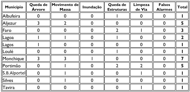 No período em referência foram registadas 28 ocorrências, envolvendo 116 operacionais, apoiados por 55 meios terrestres, de acordo com informação expressa no “Quadro 1” (em anexo).