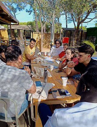 Tras una revitalizante sesión de “euro-yoga” y un baño rápido en la playa de la Isla de Tavira, se celebró un hackathon transfronterizo, una propuesta de tres de los jóvenes participantes de la edición anterior . La misión estaba clara: diseñar proyectos con impacto local y europeo que buscaran reforzar la colaboración entre jóvenes de Andalucía, del Algarve y del Alentejo. Si la risa fuese la medida de éxito de una jornada, esta habría sido un éxito rotundo. Pese al trabajo realizado y la capacidad de reflexión y creación de proyectos, la seriedad con la que los jóvenes abordaron la misión encomendada fue solo el contexto para una convivencia distendida y cercana; llena de bromas, risas y una enorme capacidad de diálogo en portuñol (o mejor dicho, en ese idioma común que aparece cuando hay ganas de entenderse).