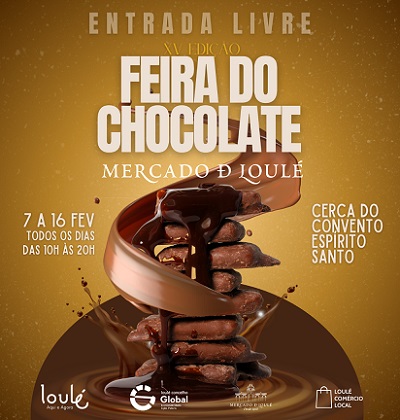 De 7 a 16 de fevereiro, a Cerca do Convento Espírito Santo, junto ao edifício da Câmara Municipal de Loulé e ao Mercado Municipal, transforma-se num verdadeiro paraíso para os sentidos, com uma vasta seleção de chocolates artesanais, criações inovadoras e atividades para todas as idades.
