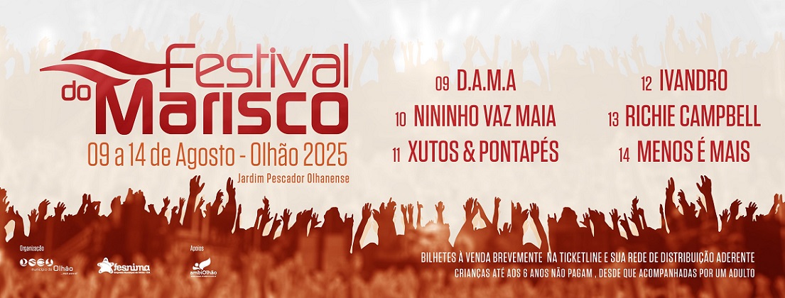 Organizado pelo Município de Olhão e pela Fesnima, com o apoio de várias entidades locais, o Festival do Marisco 2025 promete uma edição memorável, juntando música, gastronomia e convívio num dos cenários mais bonitos do Algarve. Marque na agenda e venha celebrar o verão em Olhão, no Festival do Marisco 2025.