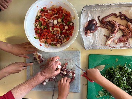 Os resultados falam por si: as crianças do 2.º ciclo revelaram melhoria significativa nos hábitos alimentares, medida pelo índice KIDMED, enquanto os seniores registaram evolução positiva no índice PREDIMED, confirmando ganhos de literacia alimentar. Para além disso, mais de 90% dos participantes avaliaram a experiência como muito satisfatória, reconhecendo que a Dieta Mediterrânica é mais do que uma forma de comer — é identidade, é comunidade, é bem-estar.
