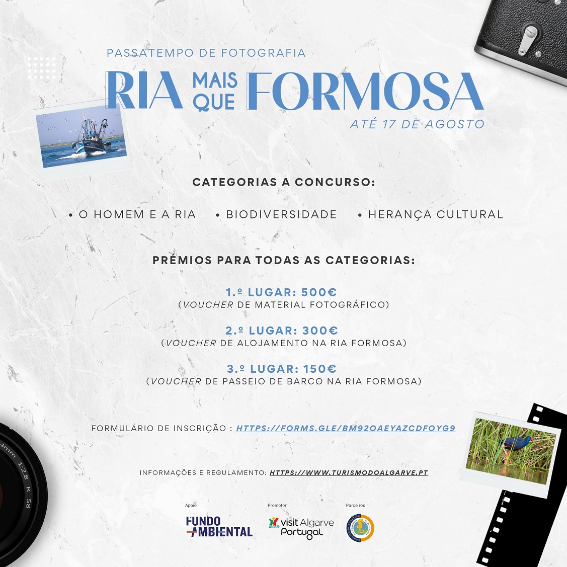 Lançado pela Região de Turismo do Algarve (RTA), o passatempo “Ria mais que Formosa” é uma forma de alertar para a conservação dos valores naturais e culturais do Parque Natural da Ria Formosa, a mais importante zona húmida do sul de Portugal. Para participar, basta aceder a este formulário (https://forms.gle/CezwFVBhC3dRC5TS6) e submeter as imagens até dia 17 de agosto.
