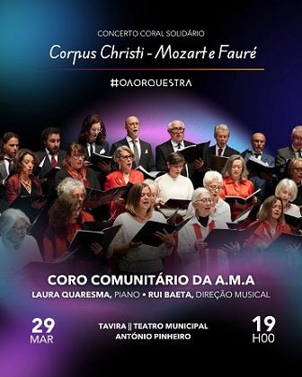 Em Tavira, o Teatro Municipal António Pinheiro acolhe, no dia 29 de março, pelas 19 horas, o Coro Comunitário da Associação Musical do Algarve – Orquestra do Algarve, num concerto solidário que inclui duas obras-primas da música coral, o Requiem de Mozart e o Requiem de Fauré.