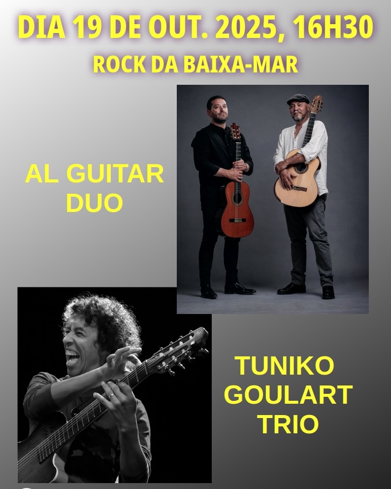 No domingo, a partir das 16h30, inserido no programa do Município de Tavira Equinócios, volta a música ao espaço da associação com músicos de outras paragens. São dois os projetos que se vão fazer ouvir: Al Guitar Duo e Tuniko Goulart Trio, e em comum as guitarras e o facto de terem disco novo.