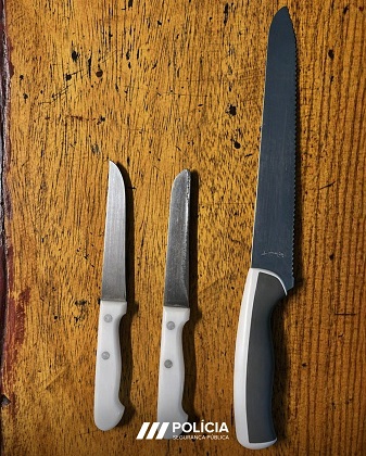 No decurso da abordagem policial, os polícias verificaram que o indivíduo se encontrava na posse de três armas brancas (facas), não tendo o mesmo apresentado qualquer justificação plausível para a sua posse. Perante os factos apurados no local, designadamente o testemunho recolhido, foi determinada a sua detenção e procedeu-se à apreensão dos referidos objetos.