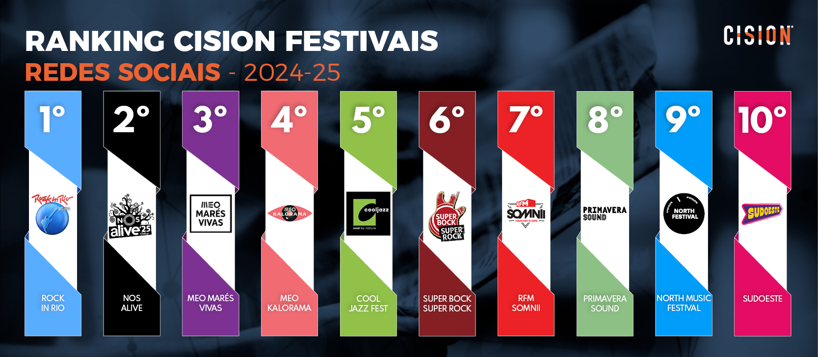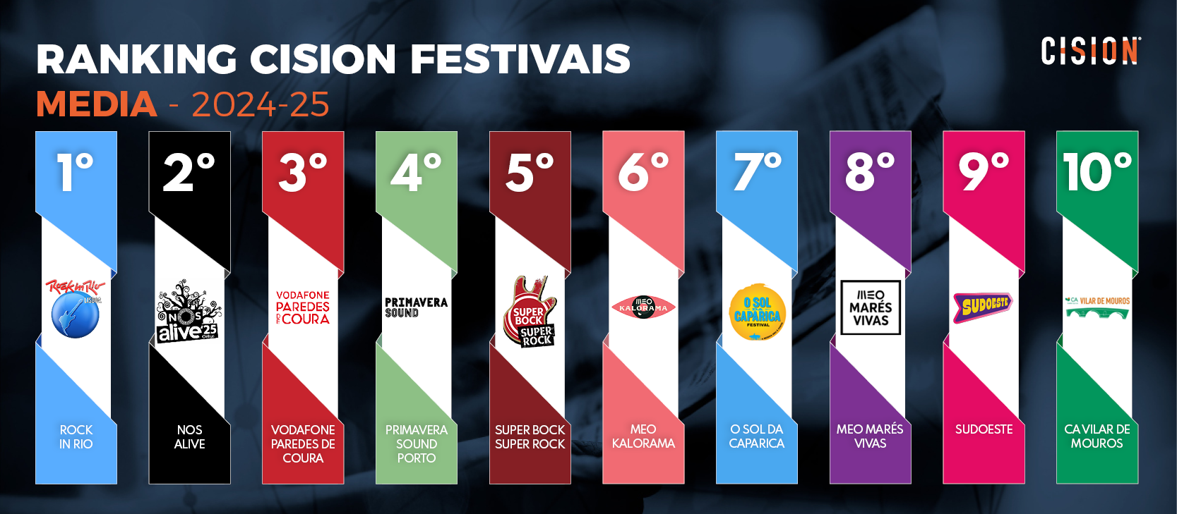 Esta metodologia dá origem à Maratona dos Festivais de Verão – Ranking Cision, um estudo contínuo que monitoriza o impacto mediático e digital dos principais festivais realizados em território nacional.
