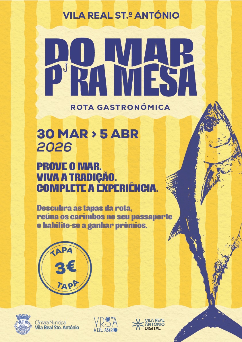 Entre 30 de março e 5 de abril, Vila Real de Santo António acolhe a primeira edição da Rota Gastronómica “Do Mar p’ra Mesa”, uma iniciativa do Centro Comercial a Céu Aberto e do Município de VRSA que visa promover a tradição pi